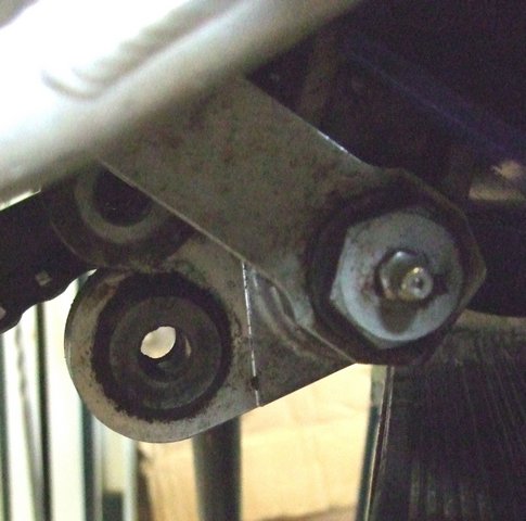 Clear a space and get the bike up on a stand and remove the back wheel to give room to work and let a bit of light in. My advice is to remove the rear wheel to allow the swing arm to drop down far enough for the bearing in the relay arm to be clear of the bottom of the shock absorber. I started the job with the wheel in but had to remove it partway through as I will explain later.