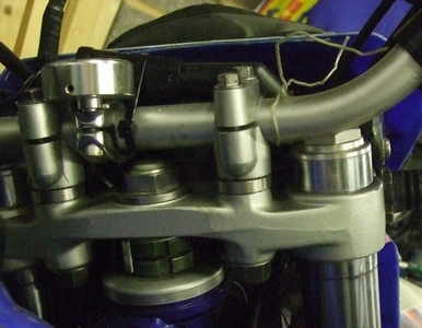 The kit fit into the original bar mounts and also allows you to drop the fork legs up through the yokes by a further 6mm if you are trying to lower the front as shown on my own TTR in this picture.