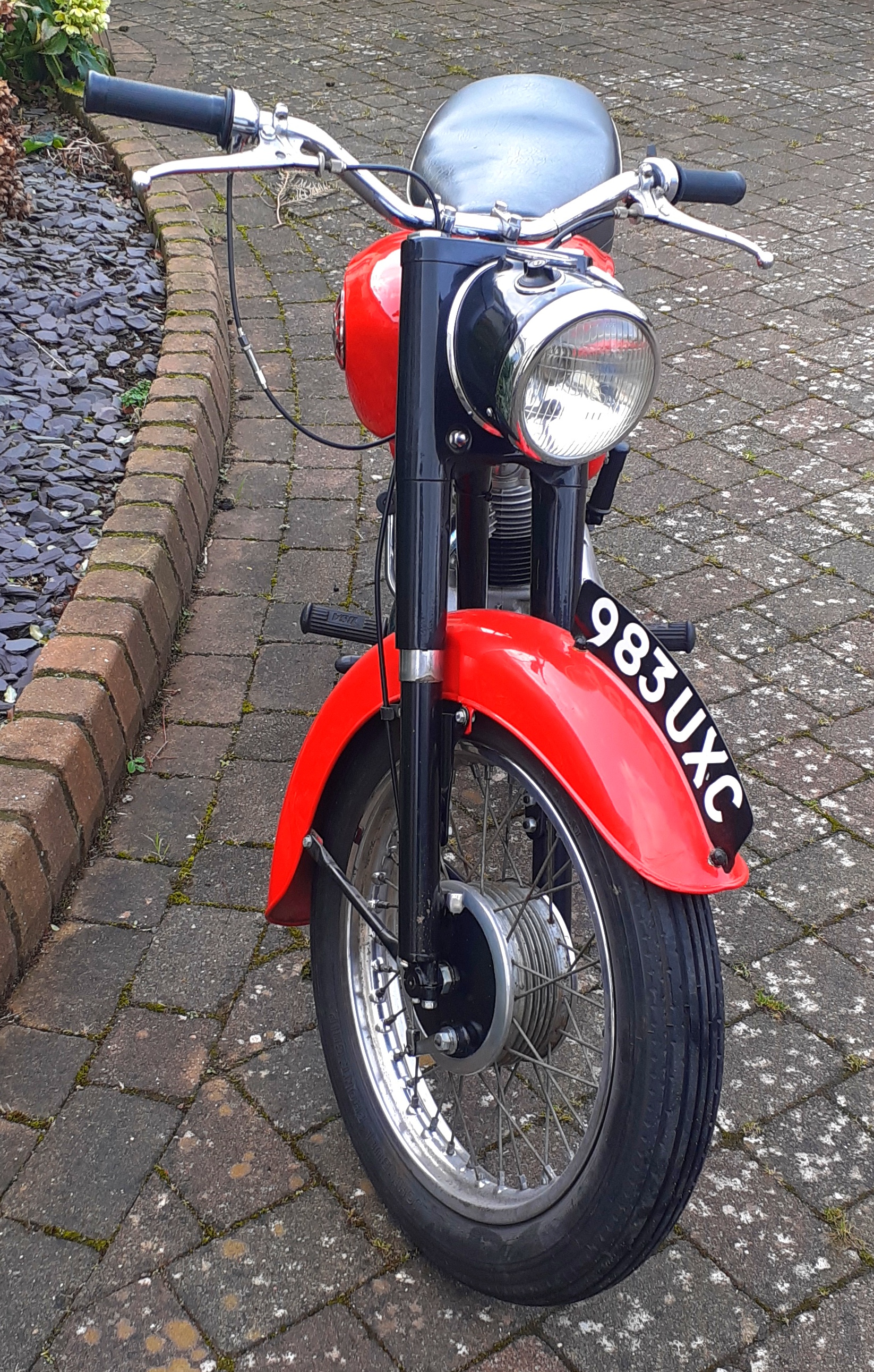 I bought the C15 in October 2018 and wanted to verify its credentials so I sent off a cheque to the BSA Owners Club's dating officer together with frame and engine numbers and got back a certificate showing that it was made in 1958 and despatched to a dealer, Wallace the Cycleries of Lansdown Road, Bath in November 1958. It was originally finished in green which was quite a surprise bearing in mind how red it is now! The engine is from a later 1960 model, despatched to Chas E Cope and Sons Ltd in Wolverhampton in October 1960, presumably after the owner had blown up the original!.
