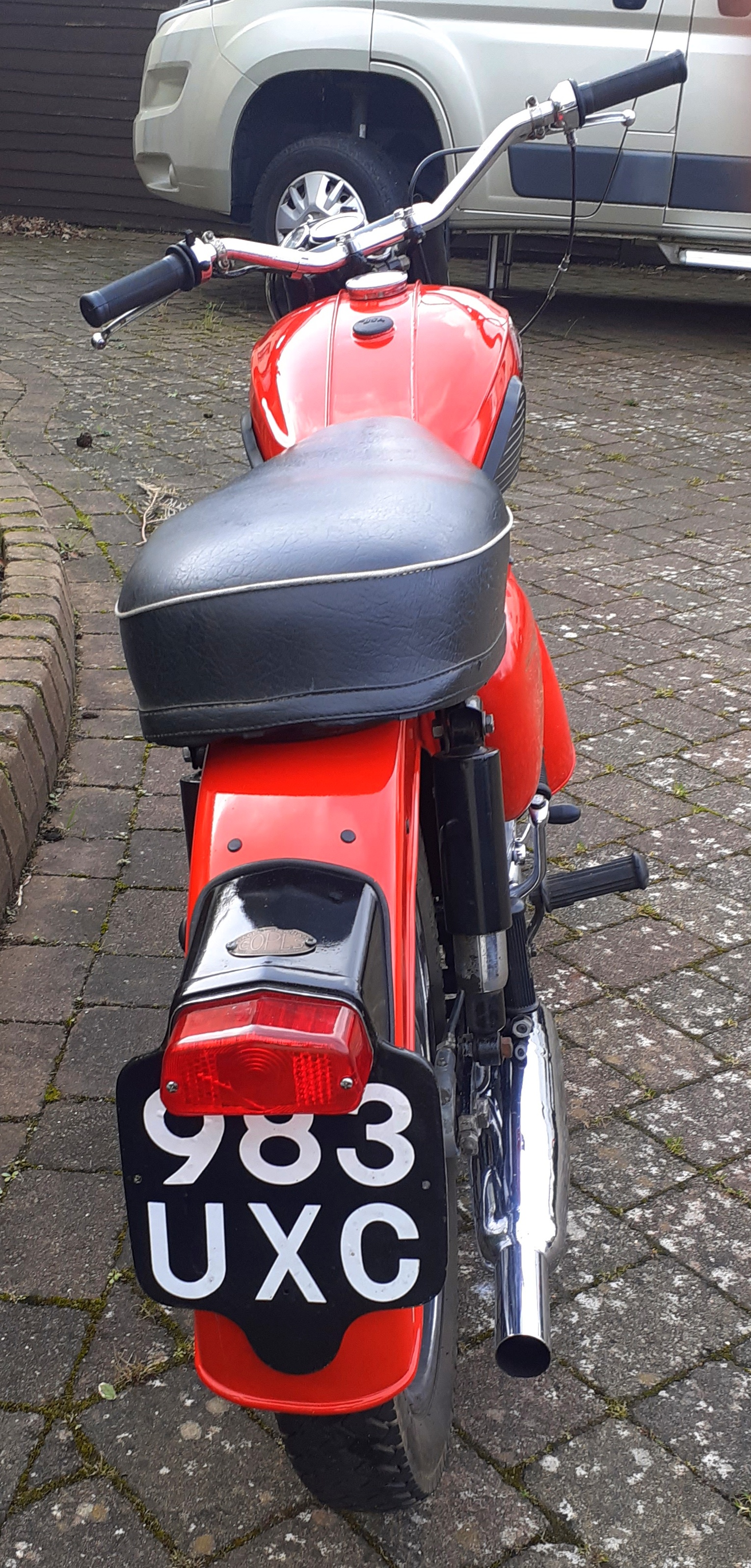 The original registration number HAS 726 was taken by "cherished transfer" and a its current registration number 983 UXC allocated. As an "historic" vehicle, the registration is non-transferable. I have the new style "red" V5C, some old MOT certificates, the BSAOC dating certificate and a lot of receipts for parts!